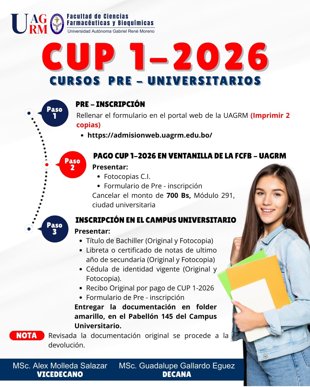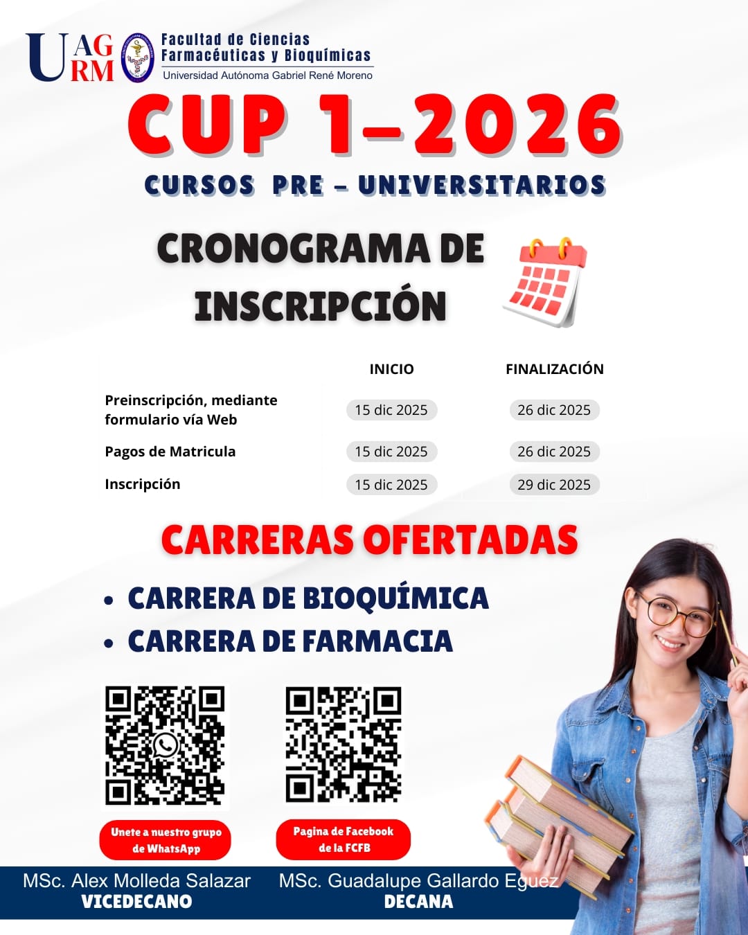 La Carrera de Bioquímica fue creada conjuntamente con la Carrera de Farmacia en fecha 25 de Agosto de 1992 en la matriz de la U.A.G.R.M. por resolución I.C.U. Nº 037/1992. La carrera empieza a funcionar con un plan de estudio individual y en la necesidad de brindar una mejor formación.