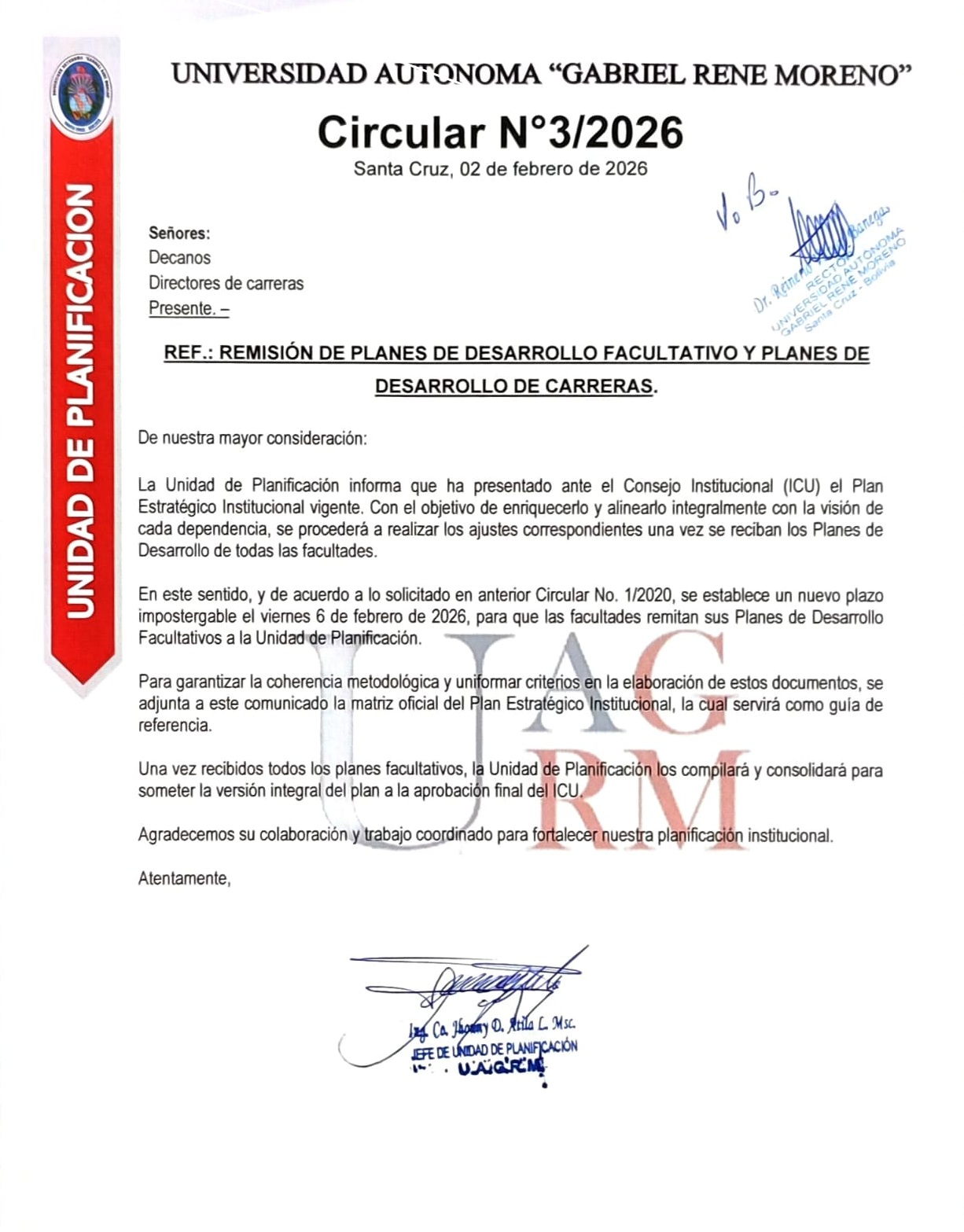CIRCULAR N° 1 CLASIFICADOR PRESUPUESATARIO UAGRM-2026