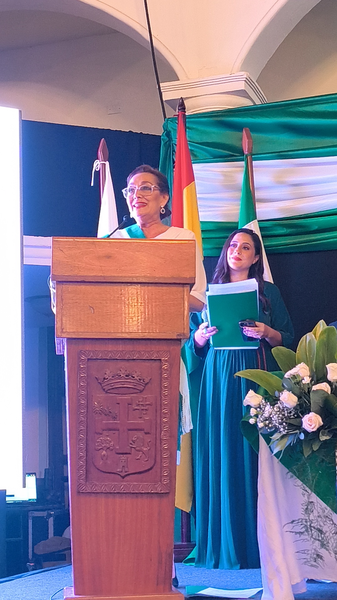 La presencia de la UAGRM en este acto también destacó la proyección del liderazgo femenino universitario, a través de la participación de la MSc. María Hilda Peredo de Gonzales, jefa del Departamento de Relaciones Públicas, Nacionales e Internacionales de la Universidad, quien asume la Segunda Vicepresidencia del nuevo directorio del ente cívico.